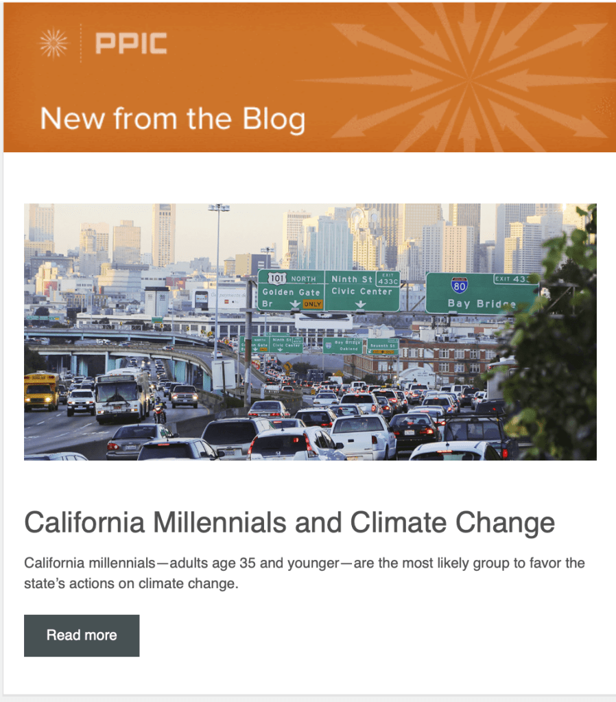 I led email marketing for PPIC, the Public Policy Institute of California. One project we needed to set up was to automate our emails from our blog posts. I partnered with a developer of FeedOtter to add functionality of Pardot to send these based on our RSS feed from the blog. This integration worked for more than 5 years, even after I left PPIC.